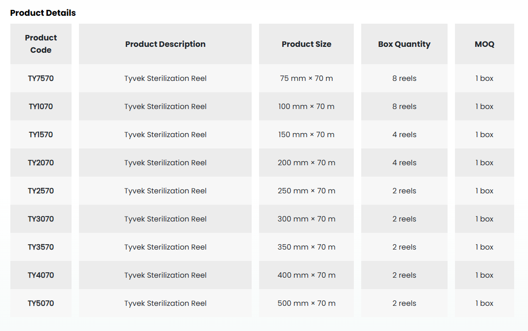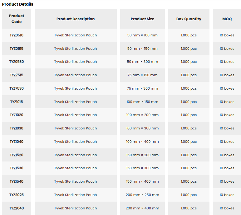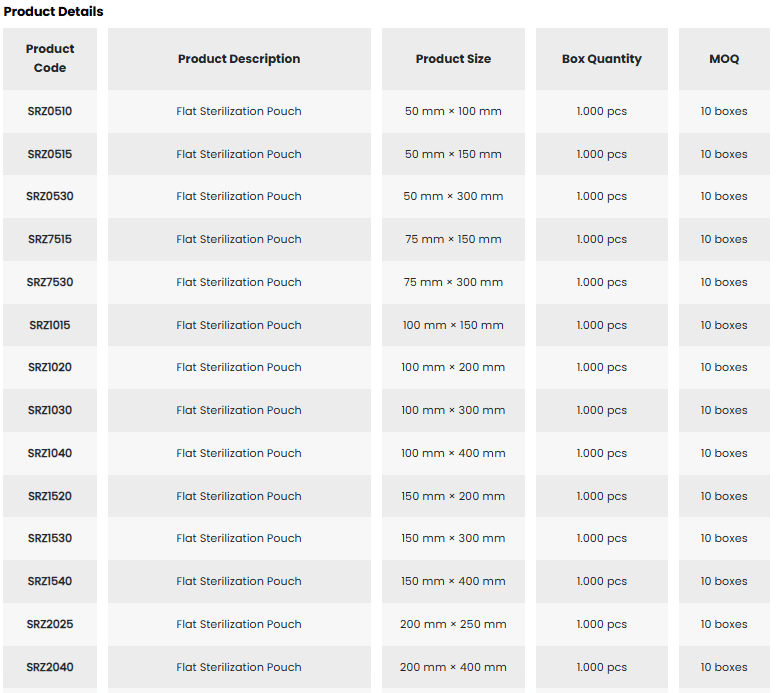 • With its wide range of sizes, it facilitates the selection of appropriate packaging for medical supplies.